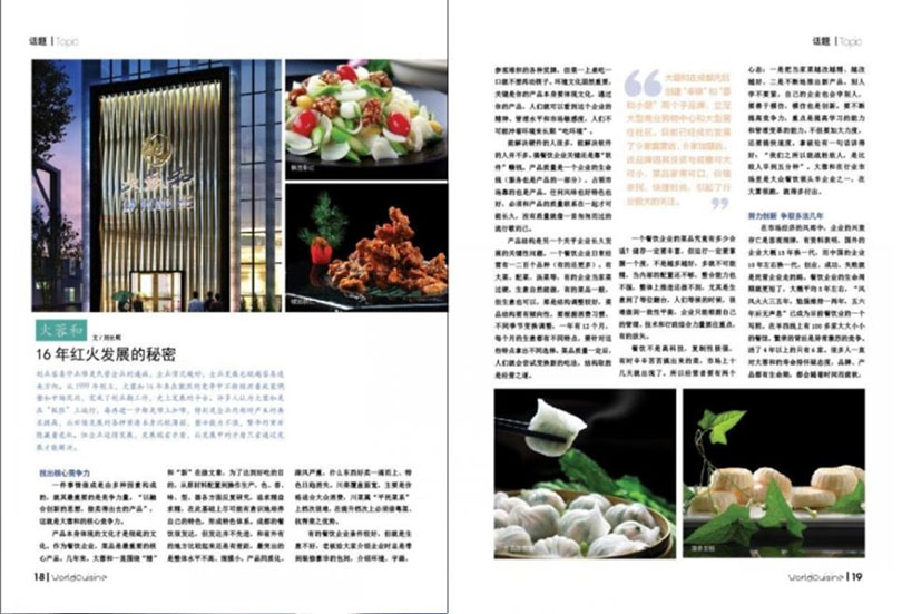 《餐饮世界》杂志以其深入的报道和专业的观点,帮助读者了解餐饮行业的最新趋势和动态。杂志的内容包括研究报告、专业分析、成功案例、专访等,向读者呈现行业内的创新技术、管理经验和商业模式。杂志还关注餐饮业的发展前景和未来趋势,为从业者提供了对商业环境和市场需求的洞察和预测。